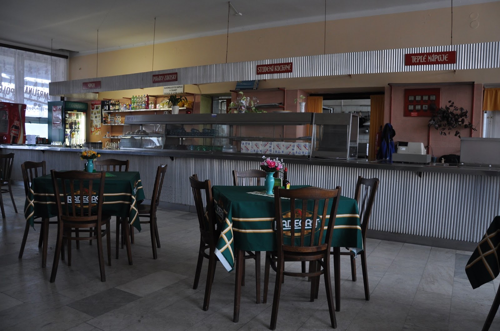 Designově vymazlená nádražka. Nad dlouhým pultem z vlněného plechu visí ze stropu další pruh vlněného plechu s vyznačením jednotlivých úseků (nápoje; poháry-zákusky; studená kuchyně; teplé nápoje; teplá kuchyně). Na stolech umělé květiny, na zdech velmi zajímavé a dle mého soudu zdařilé obrazy. Vanutí zašlých dob si je vědom i posmutnělý starší vrchní, který říká, že o víkendu otevřeno nemívá, ale dnes má, aby alespoň něco vydělal. Je na nás hodný, úslužně děkuje za každé dýško a dokonce pro nás někde schrastí výbornou zeleninovou polévku za 15 korun. U druhého obsazeného stolu živě diskutují místní štamgasti, zaslechl jsem mj. hlášku hodnou rozhovorů na webu Prigl.cz: